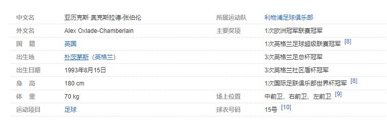 亚历克斯·奥克斯拉德-张伯伦(Alex Oxlade-Chamberlain),全名亚历山大·马克·大卫·奥克斯拉德-张伯伦(Alexander Mark David Oxlade-Chamberlain),1993年8月15日出生于英格兰朴茨茅斯,英格兰足球运动员,场上司职中场,效力于英格兰的利物浦足球俱乐部。个人简介:
