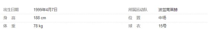 | 赛事 | 时间 | 主队 | 比分 | 客队 | 进球 | 点球 | 乌龙 | 黄牌 | 红牌 | 上场时间 |