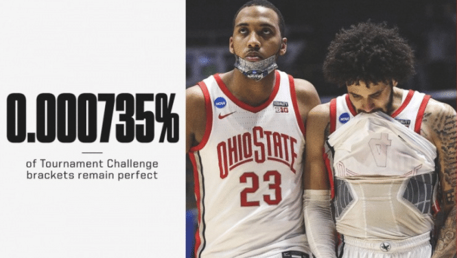 再加上今天的卫冕冠军弗吉尼亚大学被击败,俄亥俄大学出局,这样冷门太多,1470万张预测表全部阵亡,当然主要还是在于全美2号种子俄亥俄州立大学过早的出局,这也是很多人没有想到的。
