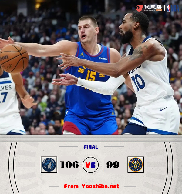 24直播网5月5日讯 NBA季后赛西部次轮,掘金主场迎战森林狼,首轮掘金4-1轻松淘汰湖人,森林狼则是4-0横扫太阳。比赛开始,爱德华兹上来就状态爆棚,里突外投连砍11分,森林狼防守在线反客为主打出14-2梦幻开局,而掘金7分钟仅得4分,随后小波特站出来连续砍分,雷吉也里突外投连续追分,掘金回应21-3攻击波直接反超2分,次节双方展开拉锯战,爱德华兹苦苦支撑森林狼进攻,小波特继续拔,掘金得分点多建立主动权,半场掘金领先4分。下半场,唐斯终于有发挥,里突外投连砍11分,但戈登连续送助攻,掘金总能回应,随后双方继续拉锯,爱德华兹又攻又传帮助森林狼反超2分,末节康利和穆雷对攻,唐斯很快积累5犯,双方比分多次打平,里德站出来里突外投连砍10分帮助森林狼领先到两球以上,但约基奇强打2+1还能回应,戈贝尔又攻又防联手爱德华兹帮助森林狼领先到双位数,约基奇里突外投连砍5分再续命,爱德华兹两罚杀死比赛,最终森林狼106-99力克掘金,1-0领先。