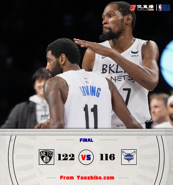 24直播网12月8日讯 NBA常规赛继续进行,篮网主场迎战黄蜂,篮网上场不敌凯尔特人,目前13胜12负暂列东部第6,黄蜂近况不佳遭遇连败,目前以7胜17负排在东部倒数第三。首节开始后双方迅速找到节奏,篮网内外结合不断取分,丹尼尔斯接连打进强势回应,双方你来我往一度僵持,但末段黄蜂进攻停滞,赛斯-库里里突外投单节独得11分,篮网一波14-5确立优势,首节结束时篮网领先10分,次节杜兰特联手欧文继续取分,篮网稳扎稳打一度确立23分优势,半场战罢,篮网继续领先18分。下半场,罗齐尔联手乌布雷率队追分,末段黄蜂再次打出10-2小高潮,双方分差回到个位数,三节结束后篮网优势只剩9分,末节上来,黄蜂延续追分势头,但篮网总能及时回应,决胜时刻杜兰特对飚罗齐尔,欧文连投带罚终结悬念,最终篮网力克对手。