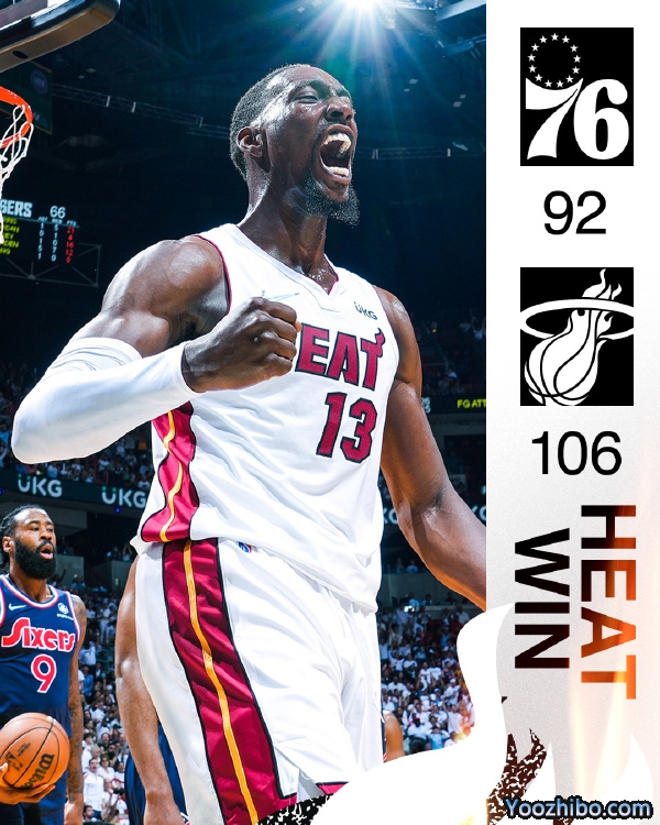 热火(1-0):阿德巴约24分12板4助2断,希罗25分7助,巴特勒15分9板3助2断,塔克10分7板,文森特10分3板3助,斯特鲁斯5分5板,奥拉迪波5分5板,马丁6分5板,尤特赛文6分