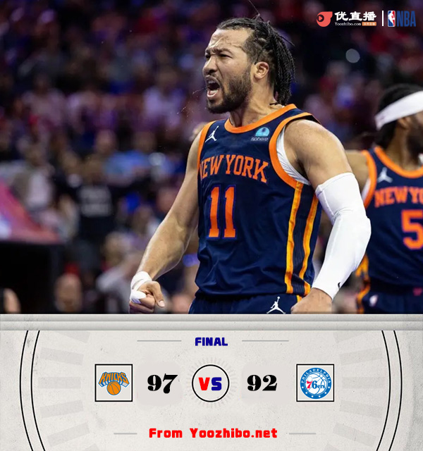 24直播网4月29日讯 NBA季后赛首轮G4,76人主场对阵尼克斯,前三场较量尼克斯大比分2-1领先。开场后两队对本场比赛都是拼尽全力,恩比德打满首节帮助76人取得领先,尼克斯这边虽然也有三名先发打满首节,但无奈除了布伦森外其他人手感冰凉。第二节趁着恩比德下场休息尼克斯掀起反扑一度将比分反超,恩比德重新登场为76人稳住阵脚。易边再战布伦森依旧保持火热的状态,他第三节独得15分帮助球队在三节过后反超1分。第四节尼克斯依靠积极的拼抢始终守住领先优势,恩比德被包夹后76人打得十分混乱。最终尼克斯97-92力克76人大比分3-1领先。