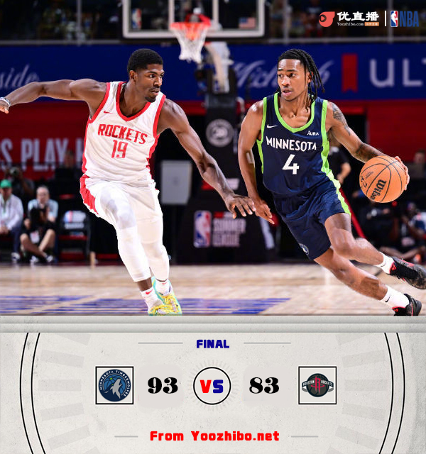 24直播网7月19日讯 NBA夏季联赛,森林狼今日对阵火箭,前者上场比赛惜败76人,后者则是输给活塞,根据此前报道,惠特摩尔已经退出夏季联赛。比赛上来,两队打得相对胶着,但是首节后半段火箭的命中率急剧下滑,而森林狼则是攻势如潮,单节拿到29分的同时建立起两位数的领先优势,次节森林狼的进攻出现问题,火箭在半场结束时将分差缩小到7分;下半场回来,火箭又是连拿七分直接抹平分差,之后两队一直保持拉锯,末节比赛火箭虽然紧咬比分却无法实现反超,最终森林狼力克火箭拒绝连败。