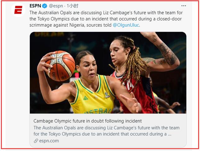 来源:24直播网07-16 18:4124直播网讯 京时间7月16日,据ESPN记者Olgun Uluc报道,澳大利亚教练组正在讨论是否将主力中锋坎佩奇驱逐出队,原因是她在近日一场对阵尼日利亚的封闭热身赛中发生了争执,同时,她在前段时间的队内封闭训练中,还违反球队纪律私自外出,这样的举动让球队上下非常不满,而澳大利亚教练组和篮协正在紧急商讨对于坎佩奇的处罚,最严重的结果,将会把她直接驱逐出队,不让她随队出征本届东京奥运会。