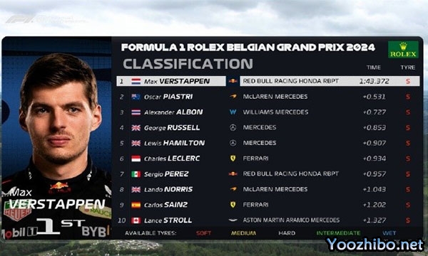 - 【录像】[腾讯]2024F1比利时大奖赛第一次练习赛 圈速2024-07-27 23:33:11