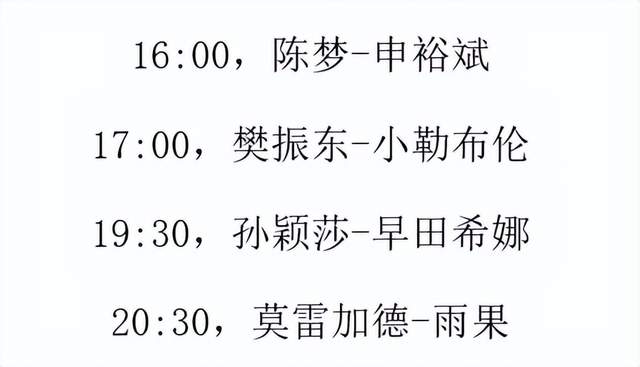 24直播网讯 北京时间8月2日,奥运会乒乓球单打赛事即将进入尾声。国乒在这个比赛日将全面出击,孙颖莎和陈梦将分别对阵日本和韩国选手,两人将力争会师决赛。而樊振东将会对阵东道主选手小勒布伦,作为国乒男单的独苗,他将继续带着捍卫国乒荣耀的动力前行。另外,巴西选手雨果和王楚钦终结者莫雷加德将争夺另一张决赛门票。