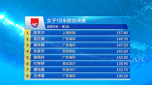 第三轮,动作是6243D,难度系数3.2,全红婵发挥很稳定,得到81.60分。陈芋汐的动作是相同的,她表现堪称完美,单跳94.05分,位居第一的同时,领先全红婵的优势拉大到20分以上。