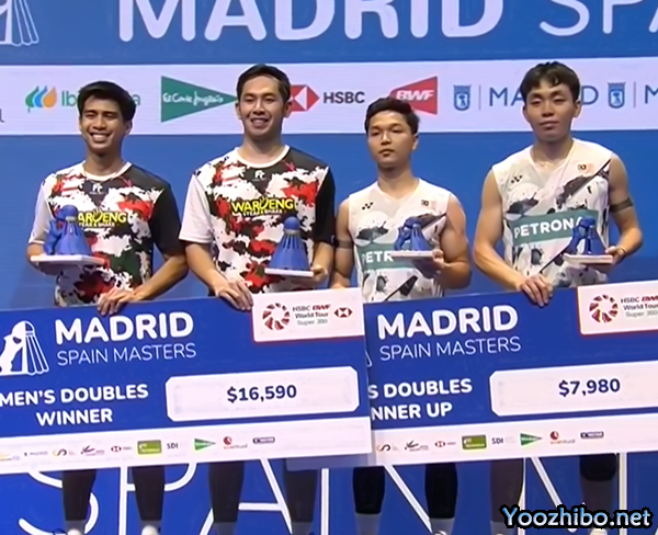 24直播网讯北京时间3月31日,2024西班牙羽毛球大师赛男双决赛咖塔曼/伊斯法哈尼vs阿里夫/叶睿庆,咖塔曼/伊斯法哈尼以2-1击败阿里夫/叶睿庆,夺得冠军!比分为21-18、17-21、21-19。