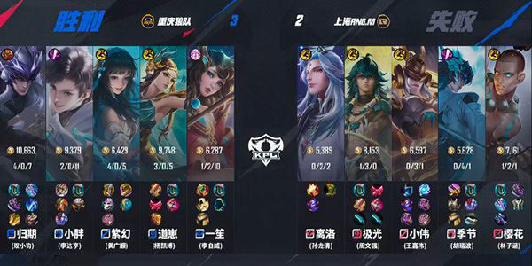 第二局,狼队前期节奏受限,依靠镜拉扯输出。RNGM进攻果断,持续施压,压制对手发育。决胜团战马超草丛埋伏完美开团,RNGM打出一换五,孙尚香豪取三杀,成功再下一城!本局MVP为上海RNGM离洛 (孙龙清)太乙真人!