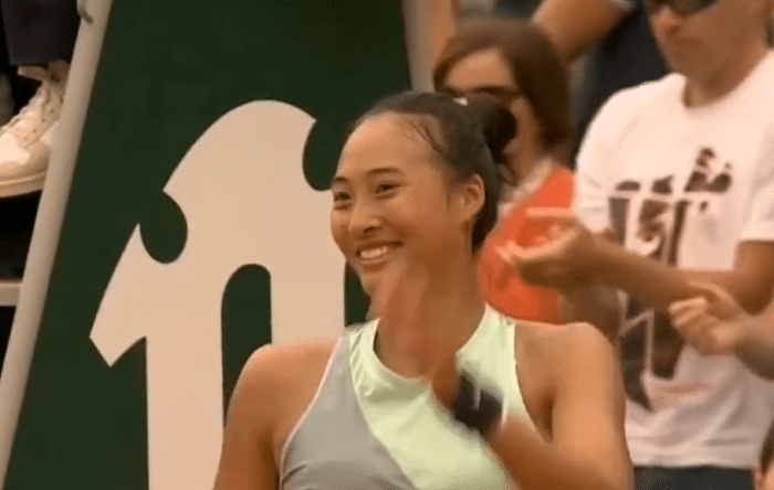 第三盘,郑钦文保发首局后,第2局再度破发。顺利保发第3局后,郑钦文已经打出了连胜8局的攻势,决胜盘3-0领先。第6局,郑钦文再度破发。第7局,郑钦文没有浪费机会,拿下发球胜赛局,6-1取得第三盘胜利,2-1晋级第三轮,她本人也非常开心,笑容一直停留在脸上。