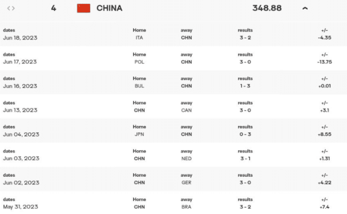 韩国队排名垫底,此前的7场比赛,韩国女排全败,第二周的最后一站面对德国队,虽然难逃8连败的命运,但终于1-3赢了一局,非常不容易,拿到了本届世联赛的第一局胜利。