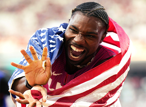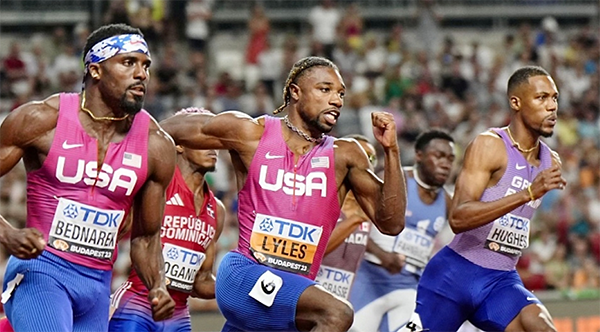 此前莱尔斯在男子100米决战中以9秒83的成绩夺得冠军,第一次获得世锦赛100米金牌。之后的200米是莱尔斯的强项,他跑出了19秒52的成绩,再度夺冠。如今来到世锦赛100米接力的项目中,莱尔斯率领美国队以37秒38的成绩站上最高的领奖台,加冕三冠王。