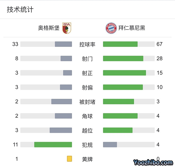 全场结束,奥格斯堡2-5拜仁。