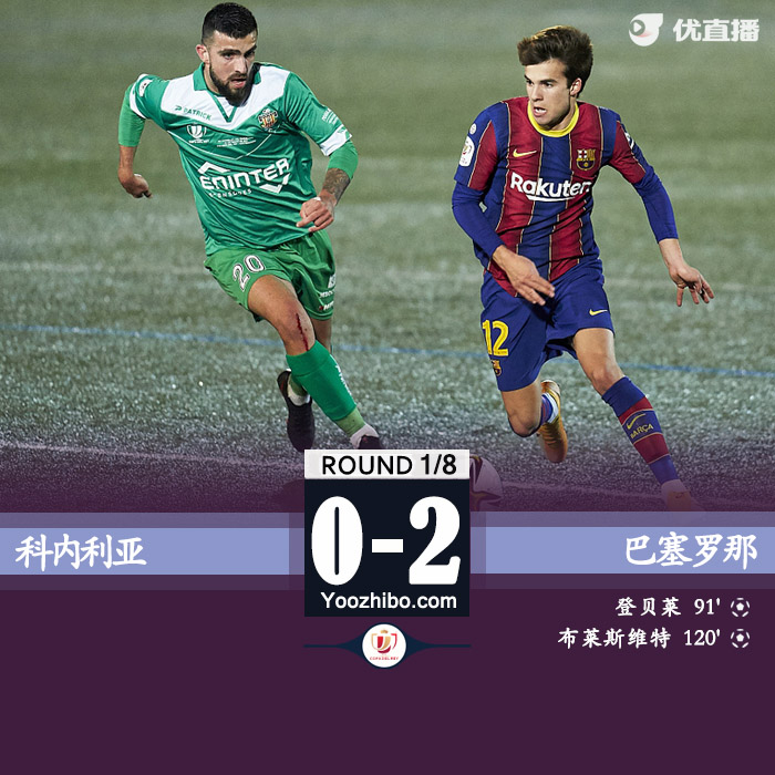 24直播网1月22日讯 北京时间1月22日凌晨4:00,西班牙国王杯1/16决赛,巴塞罗那客场挑战科内利亚。上半时比赛阿劳霍造点,皮亚尼奇罚出的点球被主队门将扑出。下半时比赛格列兹曼错失良机,登贝莱点射再次被主队门将封出。加时赛中登贝莱世界波打破僵局,佩德里压哨助攻布莱斯维特破门锁定胜局。最终,巴萨客场通过加时2-0击败科内利亚,成功晋级国王杯16强。