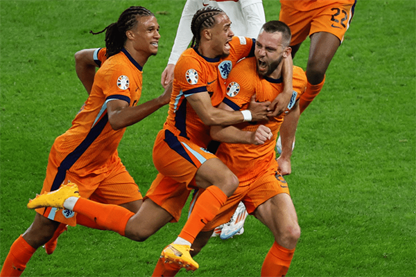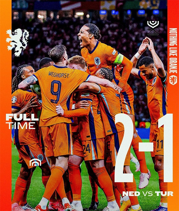来源:24直播网07-07 16:5124直播网讯 在北京时间7月7日凌晨结束的欧洲杯最后1场1/4决赛中,老牌豪门荷兰2-1惊险逆转大黑马土耳其,晋级半决赛,这也是荷兰时隔20年后再次跻身欧洲杯4强。以小组第3出线的“橙衣军团”,终于没有浪费这次绝佳的签运。