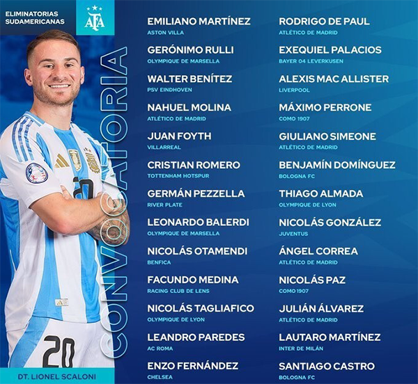 除梅西外,与首期名单相比,迪巴拉、洛塞尔索、蒙铁尔、加纳乔、埃切维里、奥尔特加这6名球员也无缘本次大名单,总计7大名将缺阵,对阿根廷队的阵容实力和战术部署无疑造成了一定冲击。