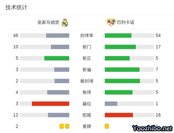 皇马2-1巴列卡诺升第二 维尼修斯破门+中柱姆总建功