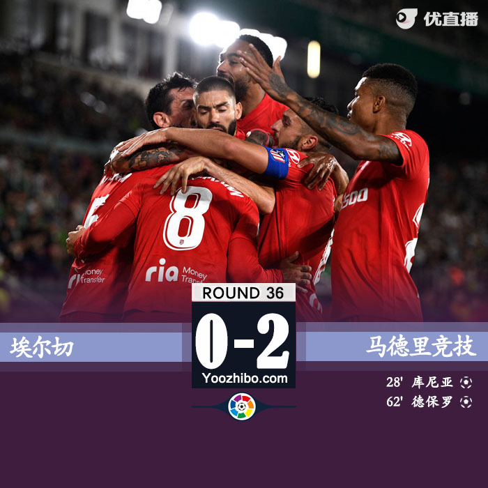 24直播网讯5月12日讯北京时间5月12日3:30,西甲联赛第36轮马德里竞技客场挑战埃尔切。上半场洛迪助攻库尼亚打破僵局。下半场格里兹曼助攻德保罗扩大比分,苏亚雷斯破门被吹。全场比赛结束,埃尔切0-2马竞,由于塞维利亚战平马洛卡,马竞升至第三!马竞锁定前四,获得下赛季欧冠资格。