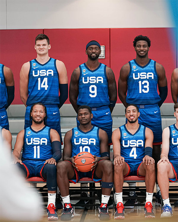 目前美国男篮正在拉斯维加斯集训,集训结束之后美国男篮将打5场热身赛——8月8日对阵波多黎各,然后美国男篮会前往西班牙马拉加,8月12日斯洛文尼亚和13日对阵西班牙。紧接着他们将前往阿拉伯联合酋长国的阿布扎比,进行为期一周的训练,并于8月18日对阵希腊以及8月20日对阵德国。