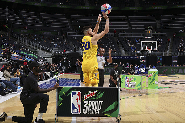 24直播网讯 北京时间3月8日,技巧大赛结束后,三分大赛正式开始。这次三分大赛,规则还是和去年一样。但是,这次三分三赛,除了分数高一点的花球(2分),还增加了两个超远的三分点(3分)。今年,参加三分大赛的选手有来自勇士的库里、前扣篮王拉文、太阳的布克、爵士的米切尔、凯尔特人的布朗和塔图姆。不过,由于布克有伤病在身,康利代替他参加了这次三分大赛。