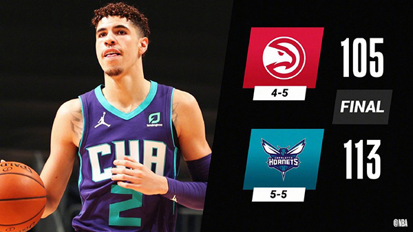黄蜂(5-5):鲍尔22分12板11助,海沃德13分3助,华盛顿22分7板,比永博4分7板,罗齐尔23分4板4断,马丁15分。