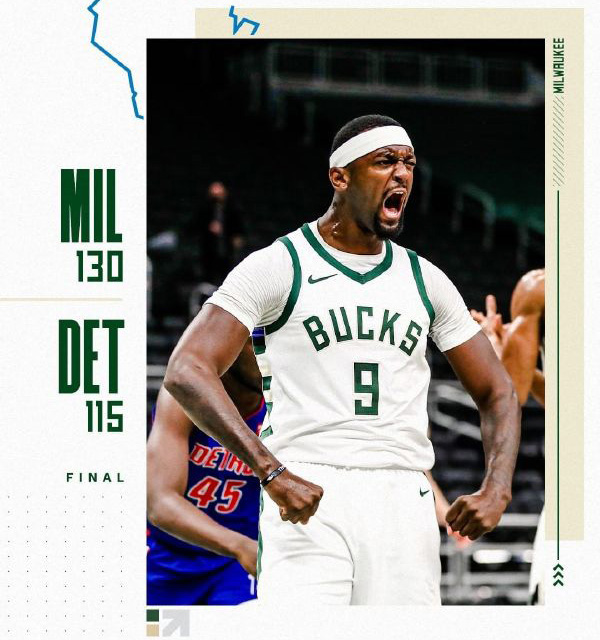 24直播网1月7日讯 雄鹿今日坐镇主场和活塞迎来第二场较量,雄鹿在进入1月份后取得2连胜逐渐回到正轨,活塞则在上一战输给雄鹿后,新赛季至今1胜6负东部垫底。首节比赛活塞进攻表现不错轰下33分,然而他们的防守更加糟糕,除了字母哥稳定输出攻下16分外,雄鹿单节5记三分为球队早早取得11分的领先。次节开局活塞仅仅抵挡了小半节就缴械投降,雄鹿内外开花的进攻送出28-14的攻势半场就拿到了26分的领先。下半场双方攻势虽然趋于一致,但手握巨大领先的雄鹿完全占据上风不给对手任何机会,末节比赛活塞的猛攻给雄鹿制造小小麻烦,不过随着雄鹿主力回归和巨大的领先优势,雄鹿仍然稳稳拿下比赛。最终,雄鹿再胜活塞迎来3连胜。
