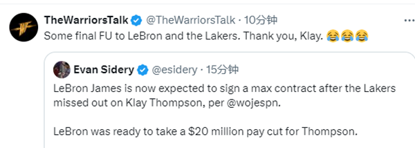汤普森的离队闹剧尘埃落定,39岁詹姆斯又扎心了;据报道,在自由市场一开启,詹姆斯就打电话招募汤普森,而且詹姆斯愿意降薪2000万帮助湖人引援汤普森,可最终湖人仍旧未能得到汤普森。