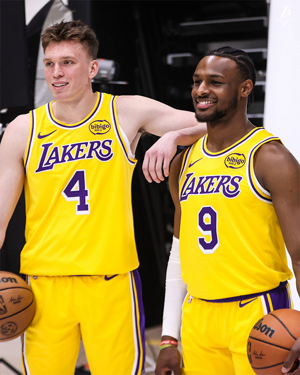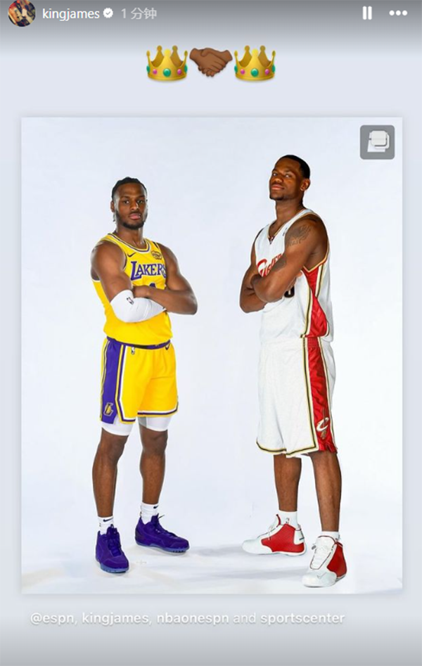 布朗尼身披湖人9号 詹姆斯父子携手前行
