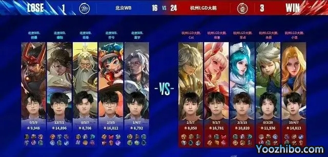 24直播网讯 北京时间02月25日,在第三场比赛中,北京WB以1-3的比分爆冷不敌杭州LGD大鹅,成为本赛季星狼狮猴第一个倒下的四大天王,本以为上一场武汉eStar已经够小丑了,没想到北京WB打的更加丑陋,五个位置基本上都被杭州LGD大鹅对位碾压,其中对抗路和发育路最为严重,打野位暖阳发挥稍微好一点。不过最后一局北京WB暖阳的宫本武藏老是顶着张良切,也属实是迷惑操作。