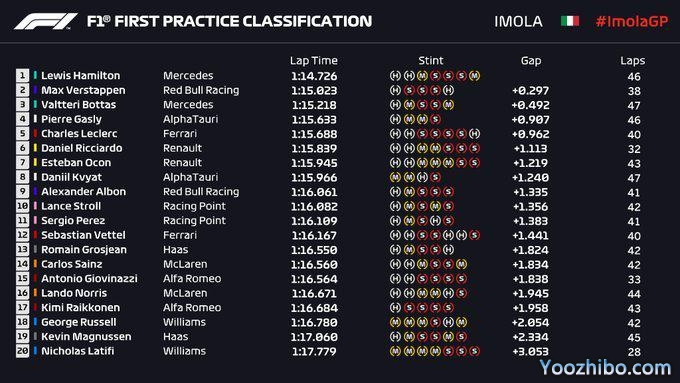 - 【录像】[QQ] 2020F1意大利罗曼尼亚大奖赛第一次练习赛 圈速2020-10-31 20:35:38