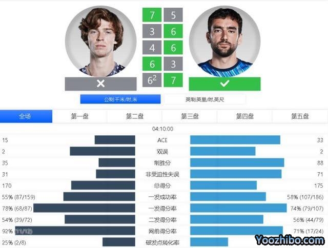 决胜盘第10局卢布列夫挽救破发点保发,双方前12局各自保下发球局,比赛被拖入抢七。抢十西里奇在1-2之后连得9分,10-2赢下了决胜盘抢十的胜利。