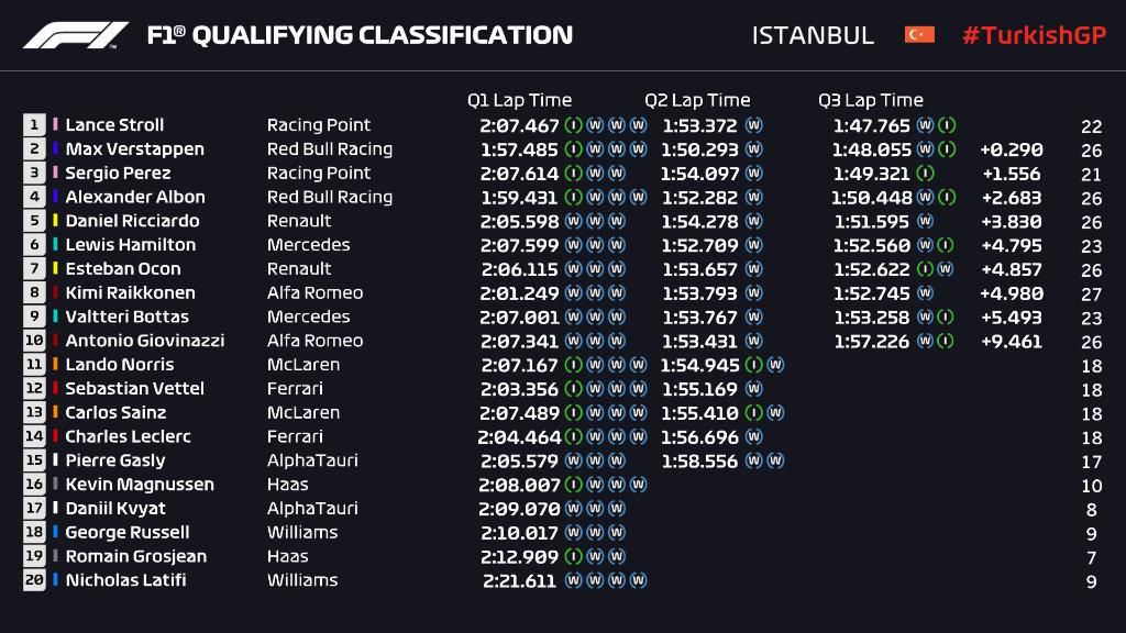 - 【录像】[腾讯] F1土耳其大奖赛排位赛 圈速2020-11-15 09:10:31