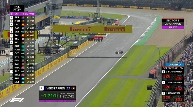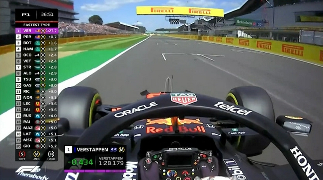 24直播网讯 北京时间7月16日晚,2021F1英国大奖赛第一次自由练习赛在银石赛道战罢。红牛车手维斯塔潘以1分27秒035的成绩排名第一,诺里斯落后0.779秒排名第二,而且他的成绩是使用中性胎做出的。汉密尔顿排名第三,落后维斯塔潘0.780秒。P4-P10分别为:勒克莱尔、博塔斯、塞恩斯、维特尔、佩雷兹、里卡多和奥康。梅奔和法拉利包揽了第三至第六名。本站排位赛将于北京时间7月17日凌晨01:00进行。