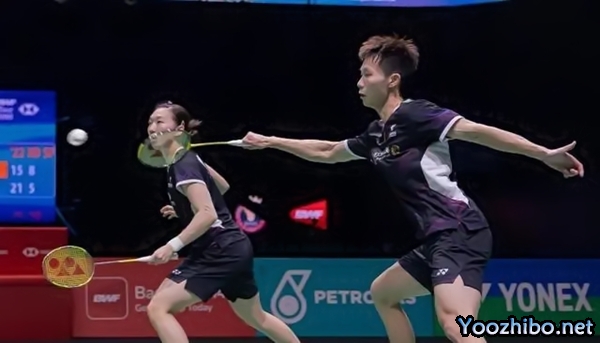 第二局。不能再输的金元昊和郑娜银,在第二局通过接发接的变化,在开局阶段打了国羽混双一个措手不及,很快就取得了6-3的领先,虽然兴邦组合在逐渐适应后,几次都把分差追到了1分,但韩国组合靠着自己擅长的防守反击,以11-8结束了前半局的争夺。有了队友凤凰组合被对手逆转的教训在前,蒋振邦魏雅欣完全不想给对手将比赛拖入决胜局的机会,在重返赛场之后,他们在控制住无谓失误后,终于打出了自己喜欢的进攻节奏,如愿将比分追到了15平,扭转气势的兴邦组合也一鼓作气,以21-18锁定了胜局。
