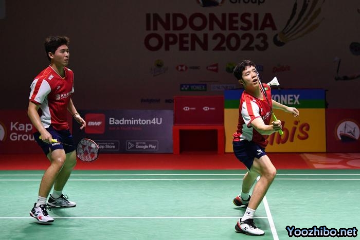 24直播网讯06月13日,2023印尼羽毛球公开赛男双第1轮科尔韦/拉巴尔vs何济霆/周昊东,中国组合何济霆/周昊东以2比1战胜法国组合科尔韦/拉巴尔,晋级下一轮。比分为21-12、21-23、21-9。