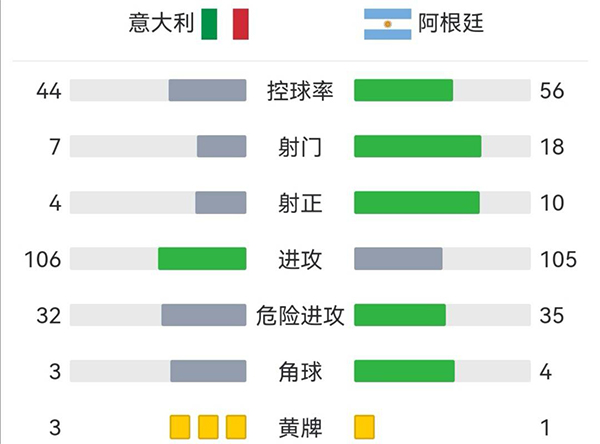 全场比赛结束,阿根廷3-0完胜意大利。