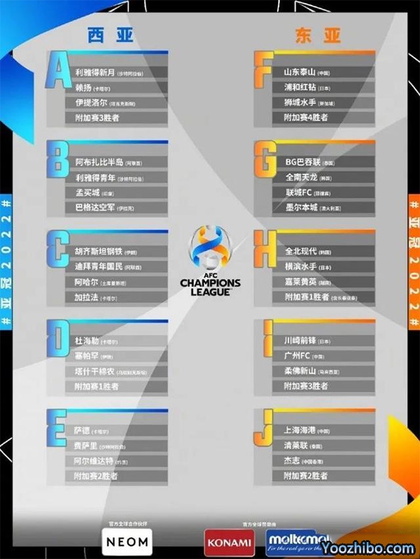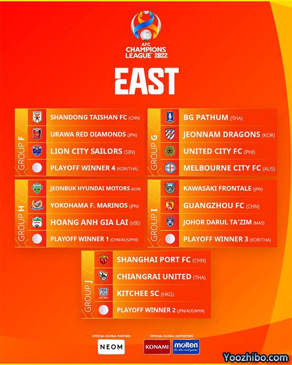 东亚区抽签结果如下: